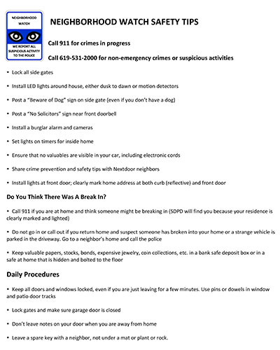 Thank you for your interest in helping to keep the Del Cerro community safe!